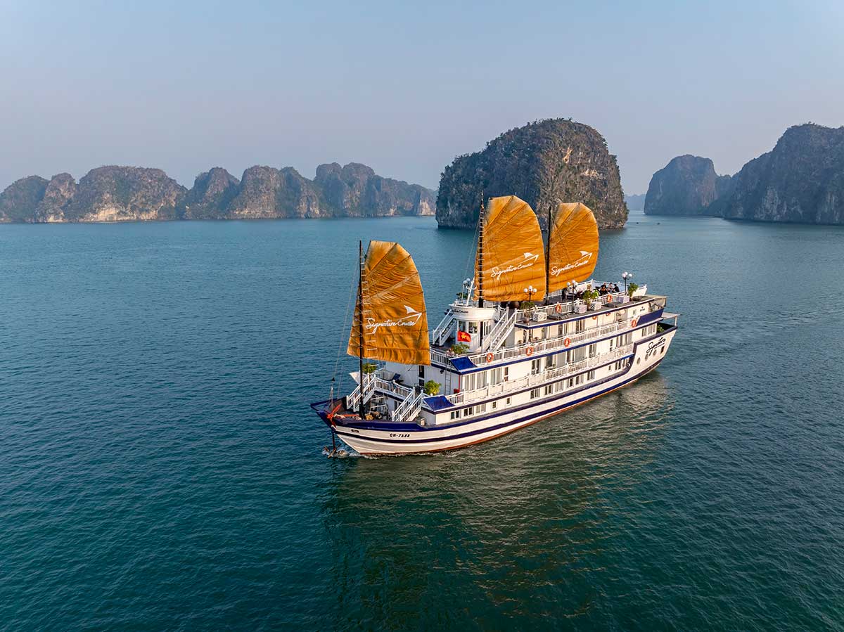 La jonque Signature a le plaisir de proposer une escapade luxueuse au cœur des paysages spectaculaires de la baie préservée de Bai Tu Long — véritable joyau paisible du golfe du Tonkin. À bord de notre élégant navire 5 étoiles, ce programme de 2 jours et 1 nuit offre une alliance parfaite entre découverte, détente et immersion culturelle.